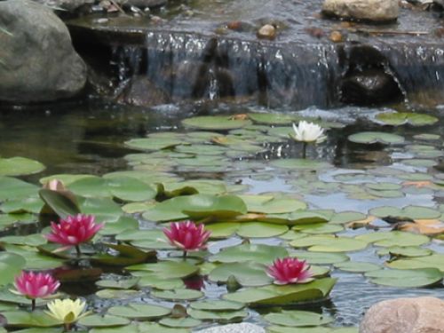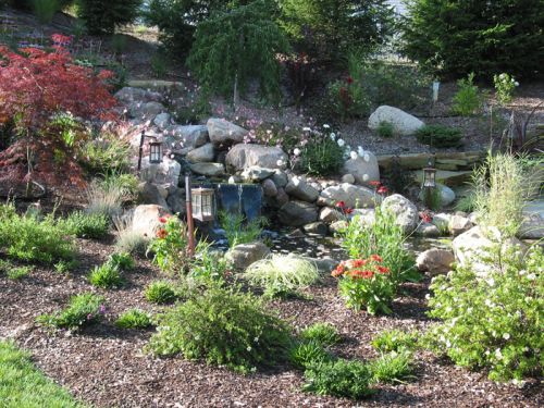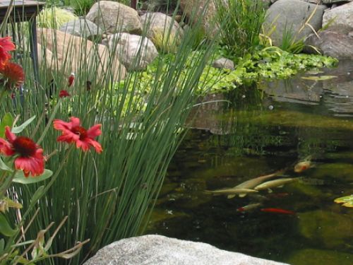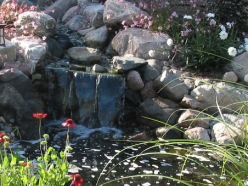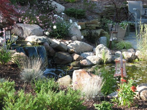 We took advantage of the hill by building a beautiful waterfall that dropped down into a koi pond at the edge of the patio. This is a perfect spot where the client can sit and relax or feed the fish. They have a great view from inside their home too.